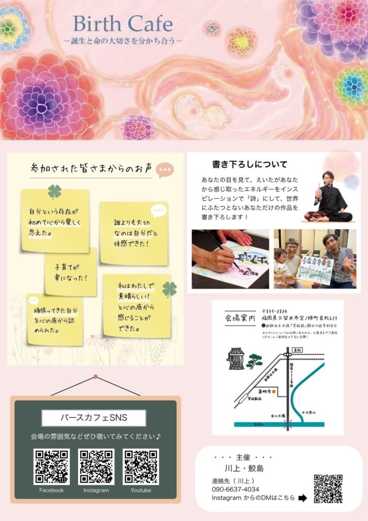 命の大切さを分かち合うことを目的に「誕生」と「胎内記憶」をテーマにしたトークや対談、映像鑑賞、体験、思いを共有する場(イベント)です。